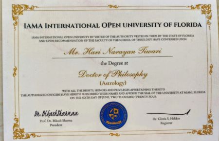 Dr. Hari Tiwari is a highly respected Vedic Astrologer, Astrological Consultant, and Research Scholar with more than 15 years of professional experience in the field of Vedic Astrology. He is PhD-qualified from IAMA International University of Florida, reflecting his deep academic foundation and lifelong dedication to this ancient science.